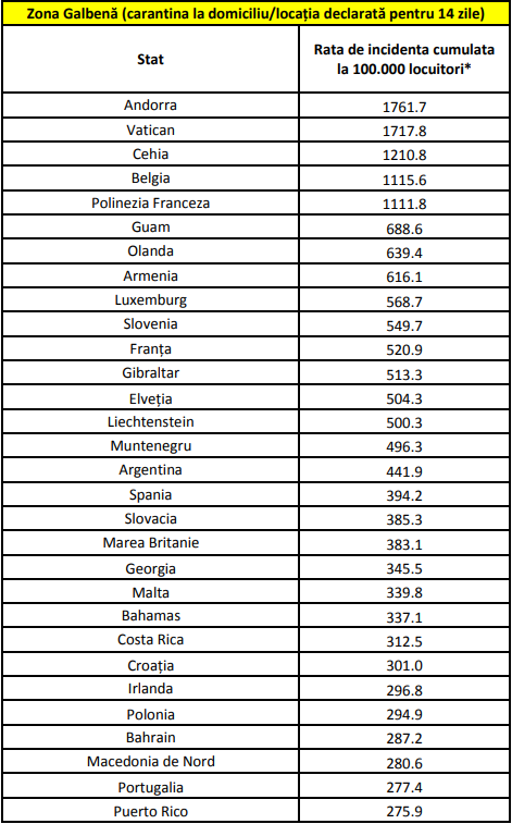 Alăturat aveți lista statelor și zonelor cu risc epidemiologic ridicat.