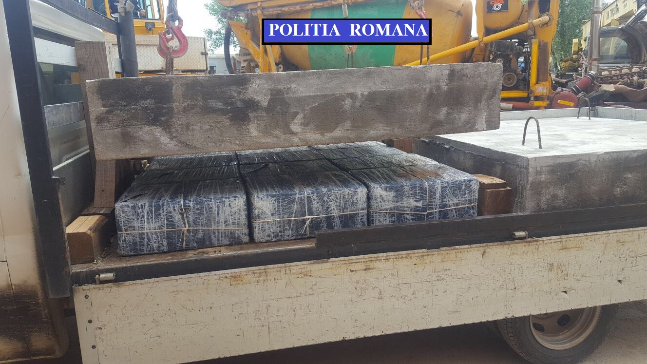 În urma controlului efectuat asupra autoutilitarei, polițiștii au decoperit 24 de baxuri confecţionate din carton şi împachetate în folie de culoare neagră, în care se aflau ţigări susceptibile a proveni din contrabandă. Baxurile erau ascunse în compartimentul de transport marfă , acoperite cu plăci de beton, în scop de mascare.