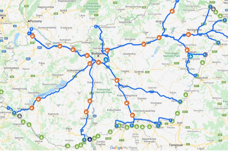A tranzitáláshoz igénybe vehető üzemanyagtöltő állomások és pihenőhelyek: