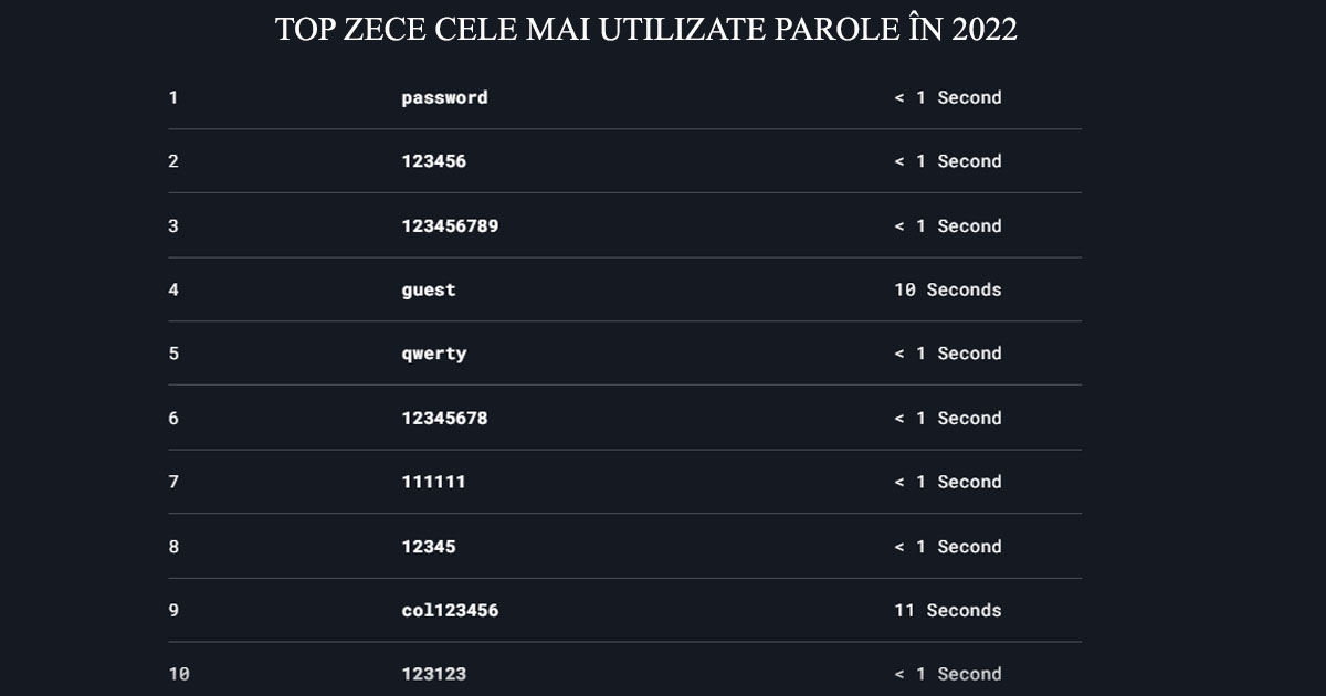 Compania de securitate cibernetică NordPass a realizat un top al celor mai utilizate parole, atrăgând atenția că cele mai multe dintre ele pot fi sparte într-o secundă. Internauții încă se bazează pe combinații facile pentru protejarea conturilor, iar cei de la NordPass spun că inclusiv managerii de top folosesc parole ușor de spart.