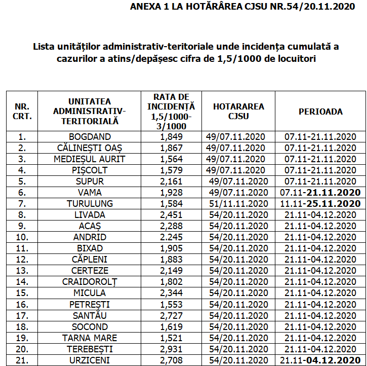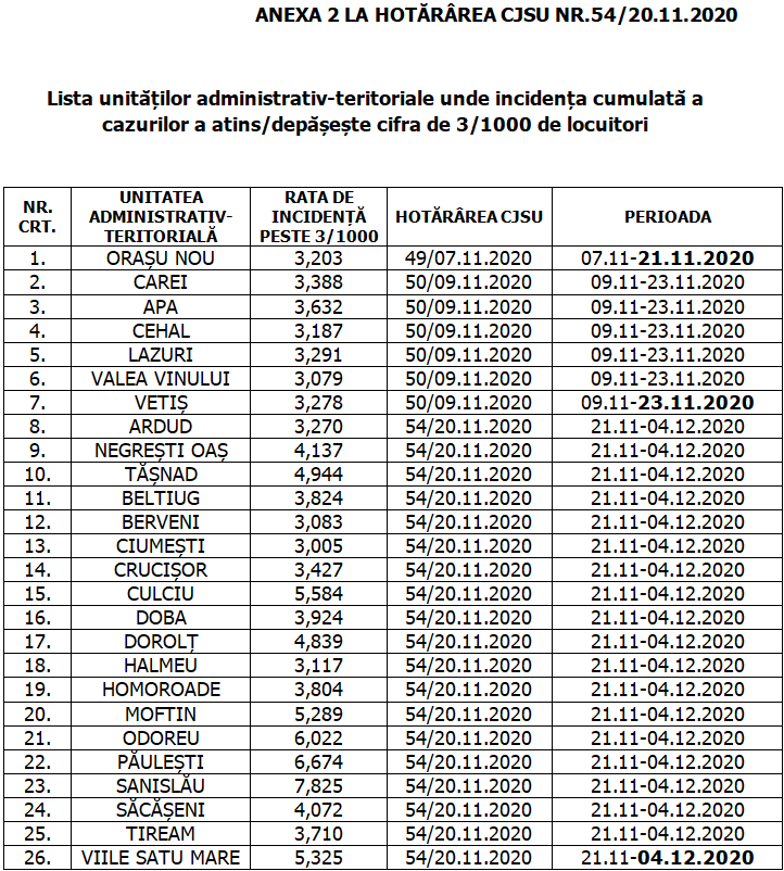 Localitățile Odoreu, Păulești și Sanislău au depășit indicele de infectare COVID de 6 la mia de locuitori și, potrivit legii, ar trebui să intre în carantină.