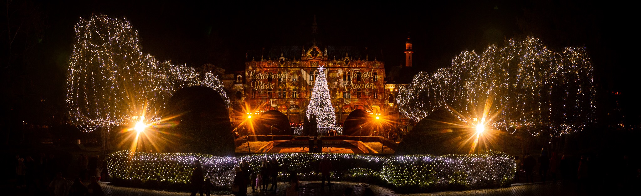 Toţi copacii din jurul platoului de evenimente, respectiv 24 de arbori mai mari şi 13 copaci mai mici, au fost îmbrăcaţi în luminiţe, iar în Piaţa 25 Octombrie a fost amplasat un brad argintiu împodobit cu 900 de metri de ghirlande luminoase cu flash.