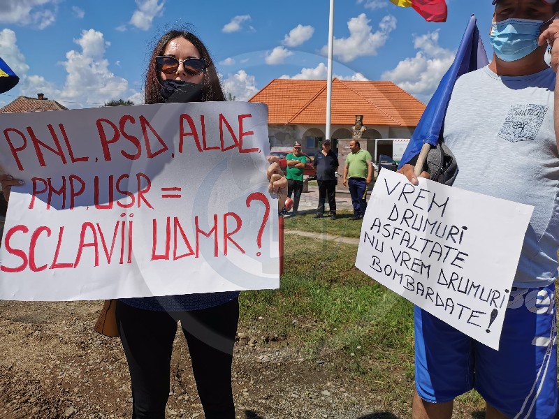 Protestului i s-au alăturat și primarii din localitățile afectate, supărați că cei din Consiliul Județean nu a venit încă cu o soluție concretă pentru a repara drumul.