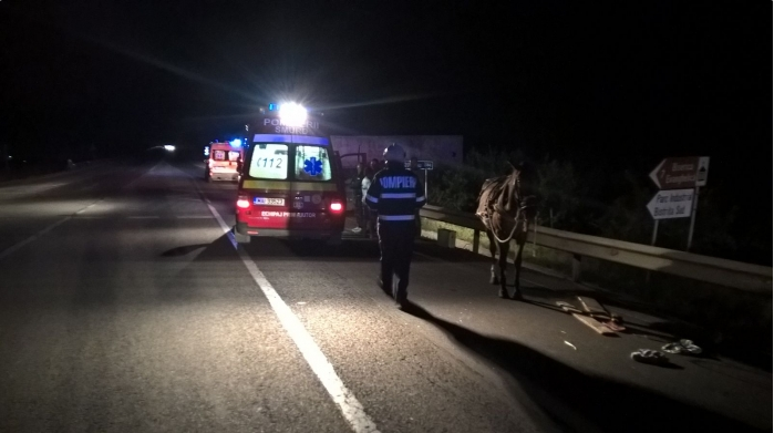 FOTOGALERIE. Un sătmărean a spulberat cu mașina o căruță și a fugit. A lăsat în urmă o victimă