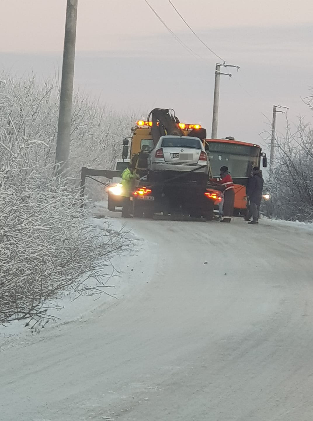 FOTO. Un sătmărean ar fi ajuns cu mașina în șanț, din cauza drumului înzăpezit
