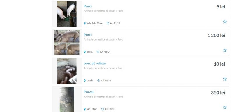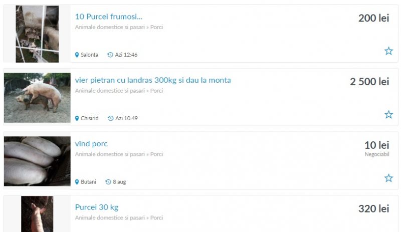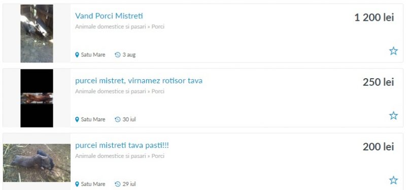 Iar cei care doresc porci mistreți, pot să îi caute tot pe site-urile care se ocupă cu publicarea de anunțuri.