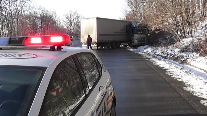 Șoferul conducea TIR-ul dinspre Cluj spre Zalău, dar a derapat în curbă. Martorii susțin că responsabilii cu întreținerea drumurilor pe timp de iarnă ar fi apărut doar după producerea evenimentului rutier.