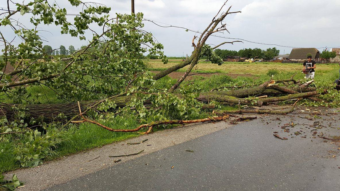 FOTO. Vântul a doborât plopi pe marginea drumului. Consiliul Județean făcut vinovat