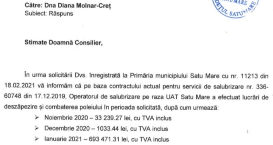 „Megkérdeztük a polgármesteri hivatalt, mennyi közpénzt költött hókotrásra? Ezen szolgáltatásokért eddig 727.744 lejt fizetett. A szolgáltatás minőségéről mindenki saját maga győződhetett meg az elmúlt három hónapban, mi senkit nem akarunk befolyásolni.” – írják az USR Plus tagjai.