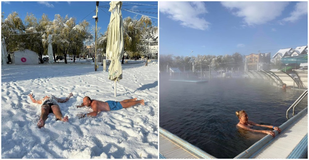 Turiștii au ales să se relaxeze astăzi la ștrandul din Tășnad. Unele persoane, mai temerare, au ales să facă înainte o baie în zăpadă, după care s-au bucurat de apa termală. Captată de la o adâncime de 1354 de metri prin intermediul unei sonde, apa termală din staţiunea Tăşnad este caracterizată de o serie de proprietăţi fizico-chimice.