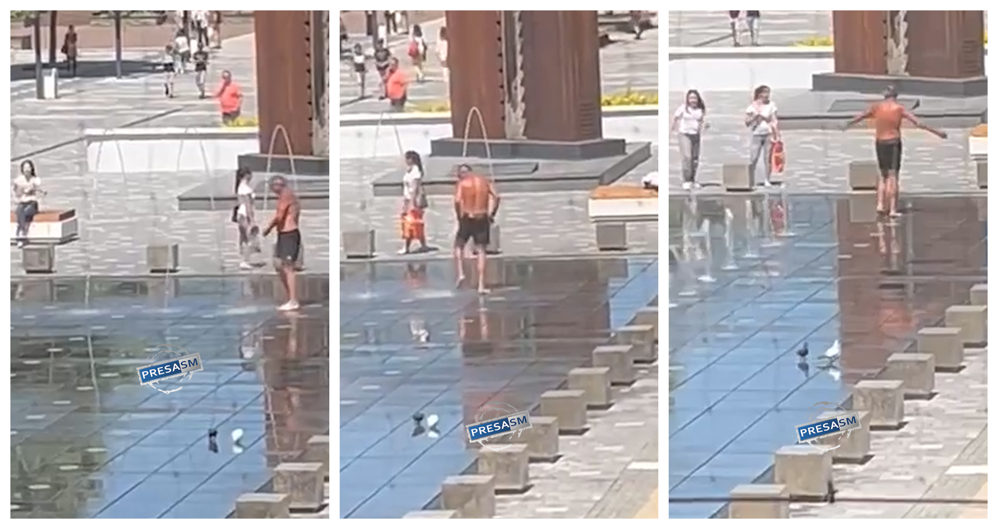 Un sătmărean a fost filmat în timp ce a intrat sub jetul de apă, spre nemulțumirea unor sătmărence aflate pe margine, care i-au atras atenția.