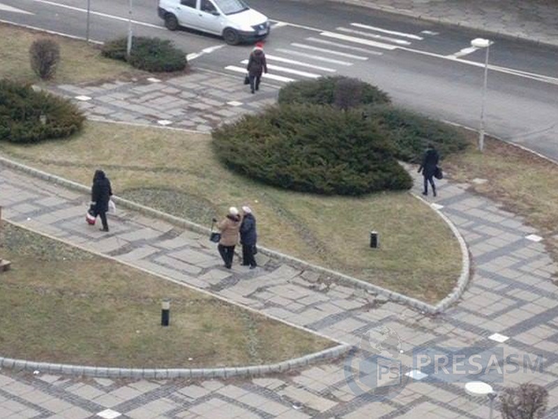 O sătmăreancă mai în vârstă s-a împiedicat din cauza trotuarului distrus și s-a lovit. A fost ajutată de către o altă sătmăreancă să se ridice, după care a avut dificultăți în a-și continua drumul.