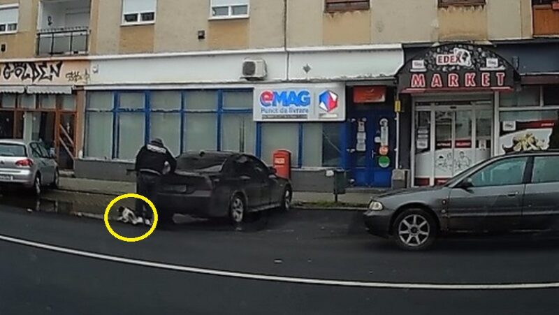 Imagini triste surprinse de către un bărbat în municipiul Carei. Totul s-a întâmplat sâmbătă, în jurul orei 15.00, pe Calea Armatei Române, atunci când un individ a scos din portbagajul unui BMW un cățeluș, de doar 2-3 luni, pe care l-a lăsat fără milă într-o baltă.