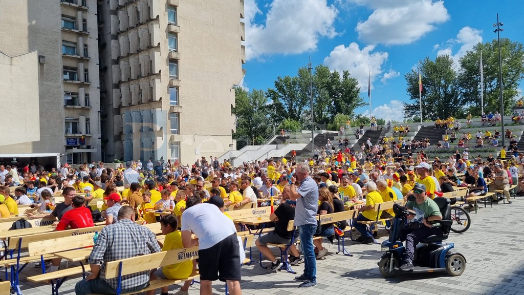 Microbiștii au sărbătorit în centru victoria superbă a naționalei în fața Ucrainei. Suporterii români au susținut echipa din primul până în ultimul minut, iar emoțiile au fost puternice nu doar pe stadion, ci și în centrul orașului acolo unde meciul a putut fi urmărit pe un ecran imens.