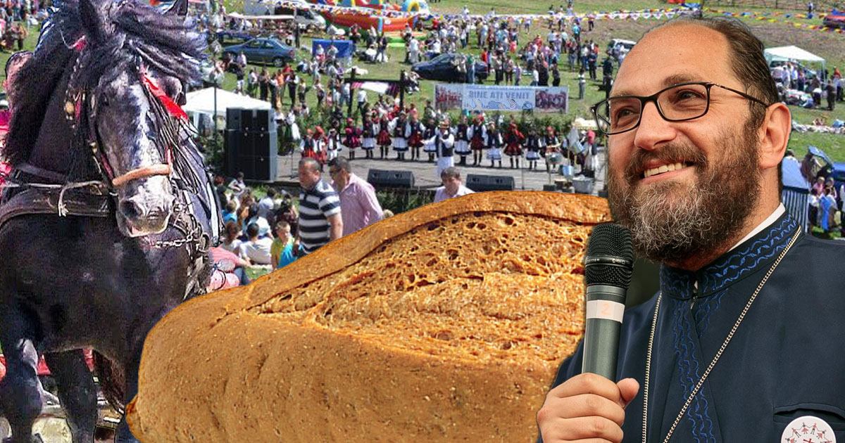 Evenimentul vine la pachet cu momente inedite: un alai format din cai și căruțe, dar și o pâine gigantică, din care vor fi serviți participanții.
