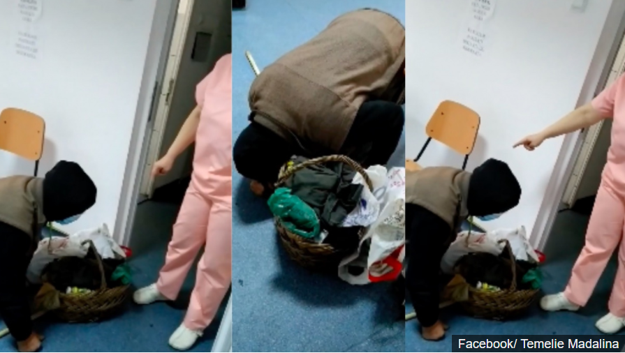Un bătrân a fost filmat în timp ce stătea în genunchi pe holurile spitalului din Corabia, județul Olt, rugându-se să fie consultat. Acesta poate fi auzit spunând că așteaptă de trei ore să fie preluat de cineva și că are nevoie de ajutor pentru că a suferit un accident vascular, potrivit antena3.ro.