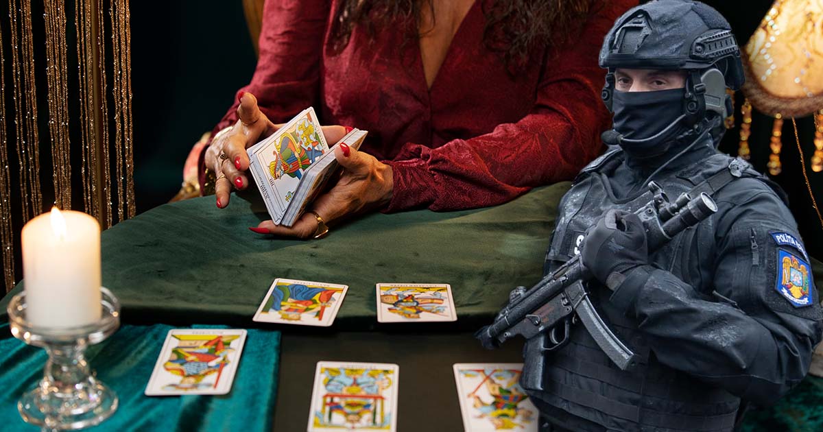 Cu toate că pretindea puteri paranormale, tămăduitoarea nu a reușit și să prevadă faptul că mascații au să-i bată în această dimineață la ușă. Procurorii o acuză pe femeie de înșelăciune. Au și reținut-o pentru 24 de ore.