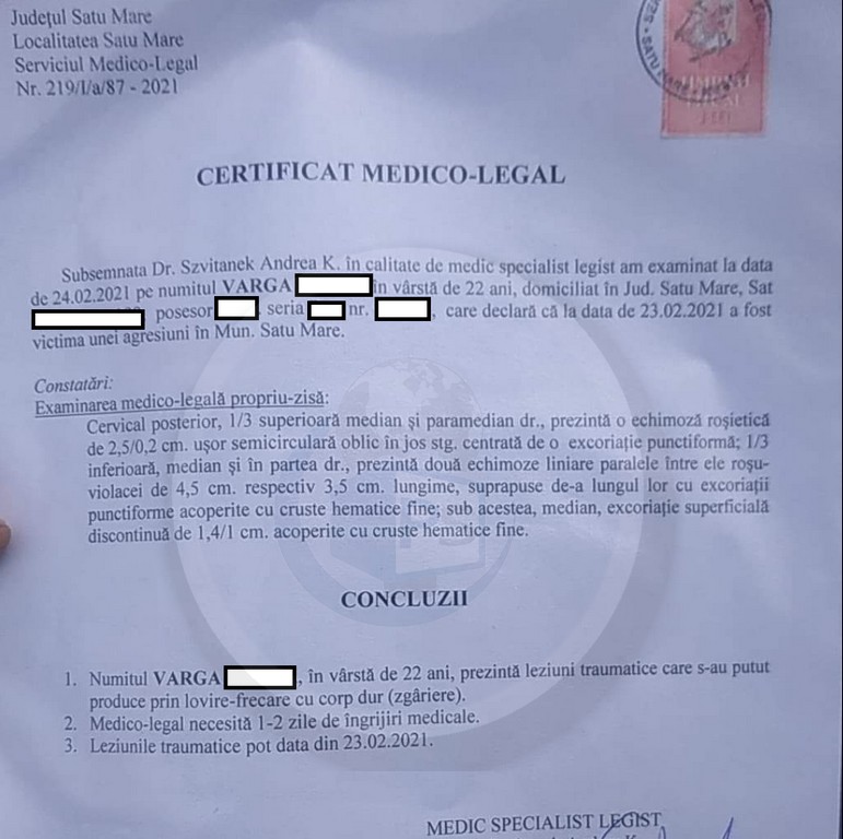 Tânărul a refuzat să depună plângere împotriva angajaților firmei de pază la sediul Poliției, dar ulterior a fost amendat de către polițiști pentru că nu ar fi purtat masca de protecție. Acesta susține că varianta polițiștilor nu se confirmă. Oamenii legii au luat un martor de pe stradă, un tânăr cunoscut cu afecțiuni psihice, internat în prezent la Psihiatrie. Martorul ar fi fost și în stare de ebrietate la momentul în care a depus mărturie și a semnat amenda în calitate de martor.