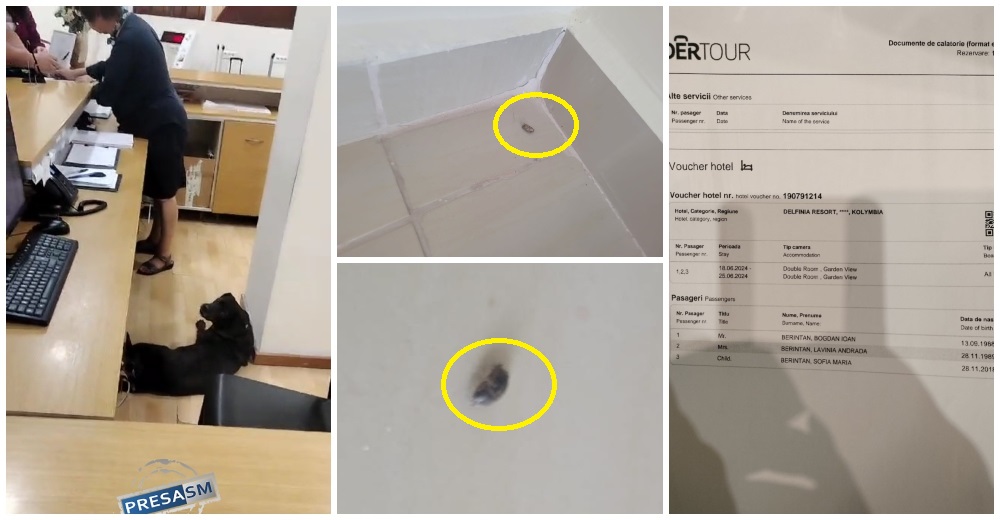 ”La aeroport a venit la noi reprezentantul touroperatorului DerTour, un ghid foarte grăbit. Ni s-a spus că vom ajunge pentru o zi la un alt hotel decât cel la care rezervaserăm camerele. Motivul: ceva probleme tehnice. Le-am spus că nu suntem de acord, dar ni s-a spus că ne descurcăm noi cum putem în acest caz. Am ajuns la hotelul indicat de ghid, unde în camere am găsit gândaci, iar la recepție era un câine maidanez. Am rămas șocați, cu copiii după noi. Când am mers la masă ni s-a spus că avem maxim cinci minute, după care am fost scoși afară din restaurant. Degeaba le-am spus că suntem cu copiii după noi, cărora le este foame”, spune - pentru PresaSM - unul dintre sătmăreni.