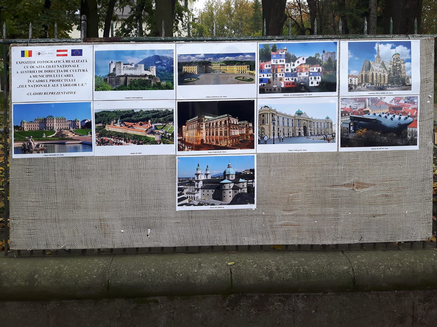 Imaginile sunt expuse pe gardul care înconjoară parcul dendrologic din jurul Castelului Károlyi din Carei și pot fi admirate timp de o săptămână. Ziua națională a Austriei a fost marcată la Carei